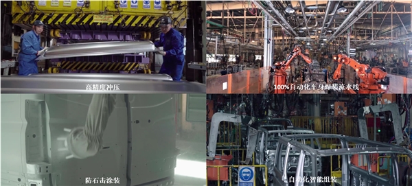 工场具有冲压、焊接、涂拆、总拆四大工艺,设置装备摆设国际先辈的KUKA、CMMP。