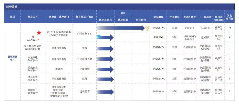 招股书提到,该公司开辟出多元化的产物组合,可无效提拔诊断效率及办事质量,此中包罗:(i)六款医学影像软件产物,包罗处于注册阶段的焦点产物AI AutoVision®、一款贸易化产物AutoVision®,以及四款临床前阶段的候选产物;(ii)三款贸易化医疗设备;及(iii)四款次要试剂及耗材。此外,德适生物供给手艺许可营业,以满脚各类医疗机构、学术科研机构及区域医疗机构的普遍需求。焦点产物AI AutoVision®是一款染色体核型辅帮诊断软件,专为施行染色体核型智能阐发而设想。正在以下各范畴进行染色体核型阐发: (i) 采用羊水样本进行出生缺陷产前诊断;及 (ii) 采用外周血样本进行辅帮生殖诊断。
